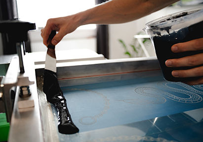Screen printing is a technique where a design is transferred onto fabric by forcing ink through a screen, with areas blocked by a stencil, creating a durable and vibrant image. Not recomended for orders under 12 garments.